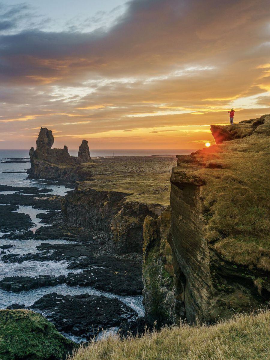 Die Halbinsel Snæfellsnes im Westen von Island wird gerne als Island en miniature beschrieben. Und sie bietet wirklich viel Abwechslung. Von Arnarstapi bis Hellnar kann man bei einem Küstenspaziergang in die Nester von zehntausenden Seevögeln schauen. Dreizehenmöwen, Lummen, Tordalken und Papageitaucher sind hier zu finden.